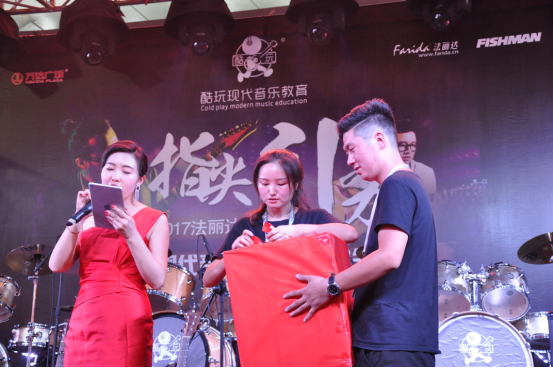 精彩的学员演出后,现场的互动抽奖吸引了大家的注意,奖品由Fishman音箱和法丽达吉他联合赞助,送出Fishman 的拾音器,T恤,雨伞,法丽达T恤帽子等。
