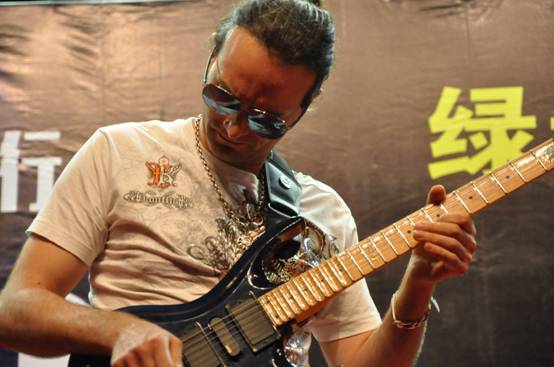 有了众多吉他高手的珠玉在前,压轴登场的Inophis在舞台上自然不甘示弱,他娴熟的技巧和狂放的台风带来了听觉与视觉的感官多重冲击。快速、自如的点指功夫频繁上演。